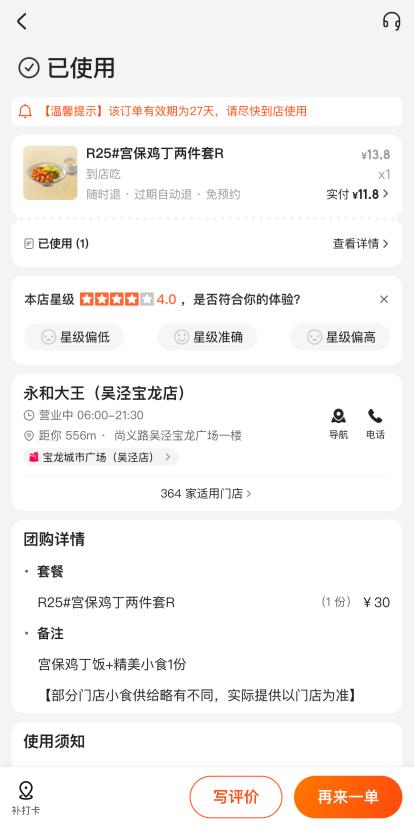 12:36刚刚完成点餐的顾客范安使用美团团购套餐购买了单人套餐宫保鸡丁饭和鸡蛋羹,他表示,自己是在美团上看到套餐并购买后才选择到店就餐,价格实惠是他消费的重要原因。“到店点餐的话我点的这些要20块,团购就只花了12块钱。”他还特别指出,“感觉之前永和大王定价挺高的,做美团团购套餐好像是这两年才有。”记者在店内点单小程序和美团团购分别购买了上述商品,店内点餐花费20元,团购套餐花费11.8元,同范安的表述基本一致。