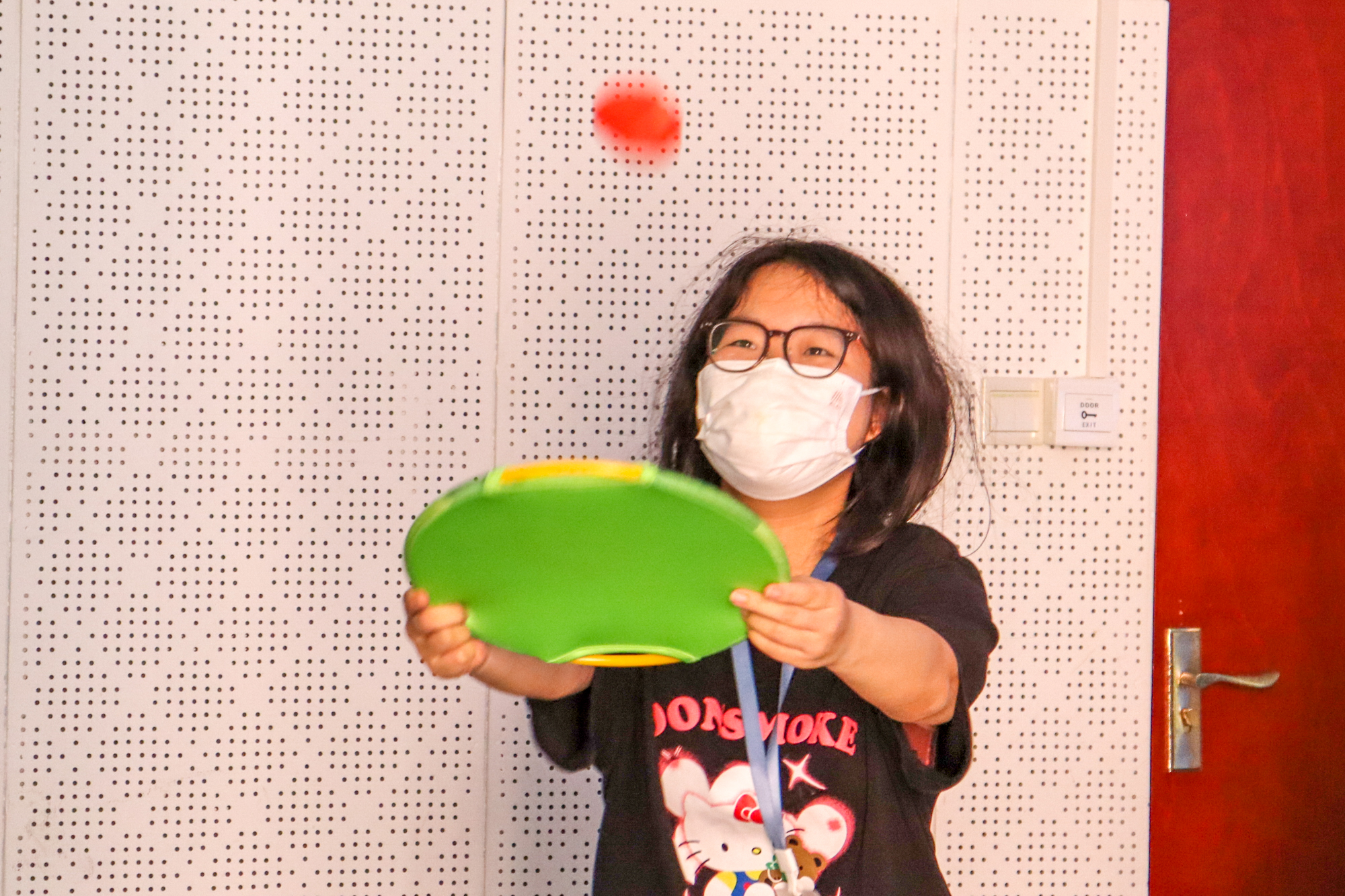 讲座的开始,黄茜老师邀请同学们尝试巧虎图书中的两个小玩具——神投手的箭与壶、弹巧虎开心弹弹包,活跃气氛的同时带领大家了解她“误打误撞”的出版职业生涯。