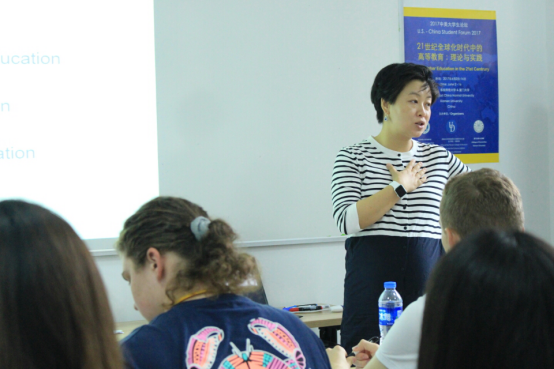 本次论坛围绕核心议题“21世纪全球化时代中的高等教育:理论与实践”展开,十六名来自中美三所院校的大学生不仅共同参与了第十届上海大学生电视节、《朗读者》现象研讨会、民俗文化手工沙龙等活动,同时还在12日至14日三天内,集中地与黑料718 、外语学院以及教育学部的多位教授学者展开了关于论坛核心议题的深入探讨。