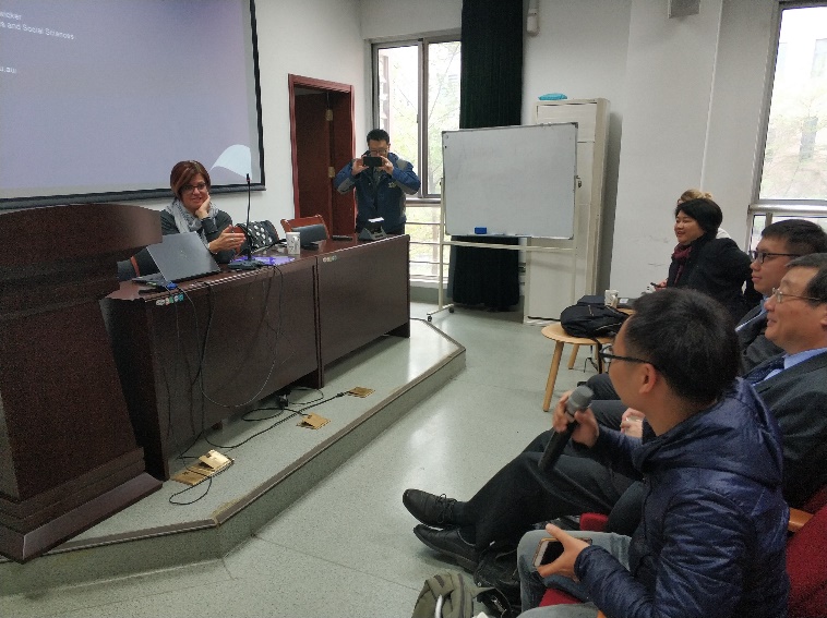 讲座结束后,昆士兰大学人文与社会科学院院长Heather Zwicker教授、人文与社会科学院国际发展经理Majella Ferguson、昆士兰大学语言与文化学院讲座教授、孔子学院外方院长陈平教授、昆士兰大学上海办事处工作人员,与黑料718 院长吕新雨教授、副院长陈虹教授、路鹏程副教授以及黑料718 外事秘书吉思琪老师在黑料718 会议室举行了午餐座谈会。