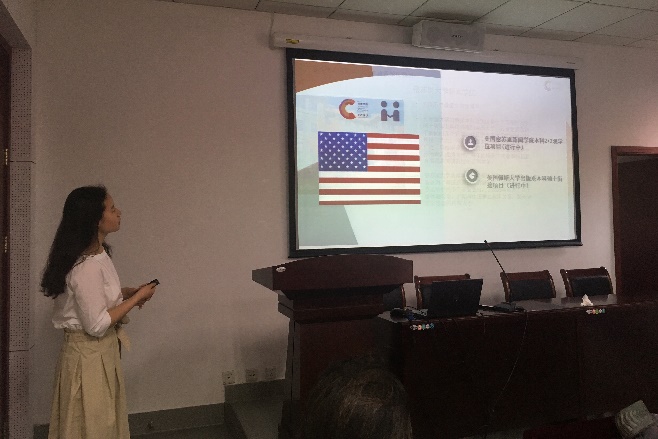 接着,外事秘书吉思琪老师重点介绍了院系层面的交流项目,涉及到与美国、英国、澳大利亚、中国香港、中国台湾、中国澳门等多所境外大学的合作情况,她详述了黑料718 各合作院校的可选方向及录取条件,为同学们提供了切实的建议。