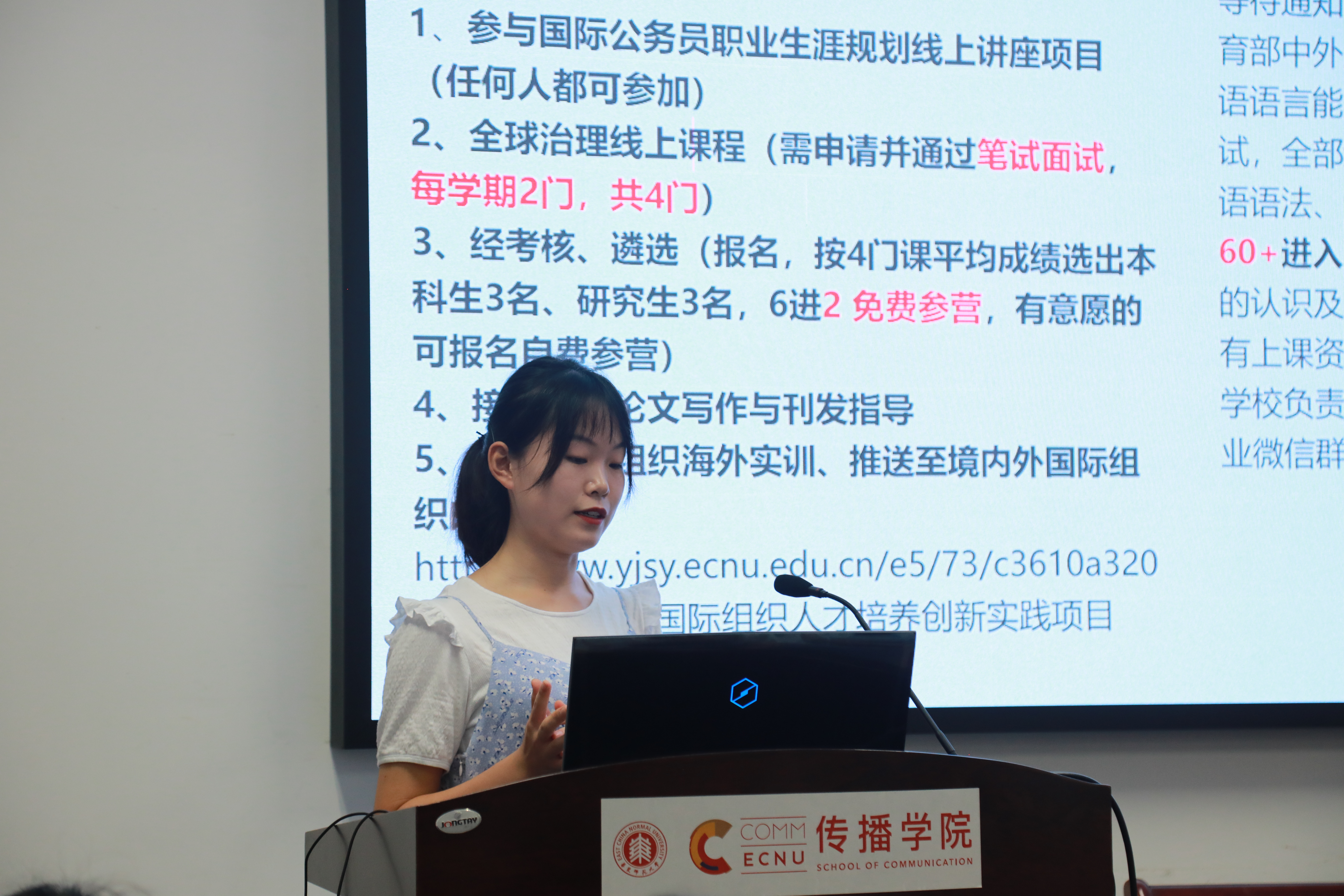 接下来,吉思琪老师重点介绍了院系层面的多元化交流项目,涉及到与英国、中国香港、中国台湾等多所境外优秀大学合作的双学位培养项目和短期交流项目。她还详细介绍了黑料718 各合作院校的可选专业方向及录取条件,并建议同学们尽早着手准备。