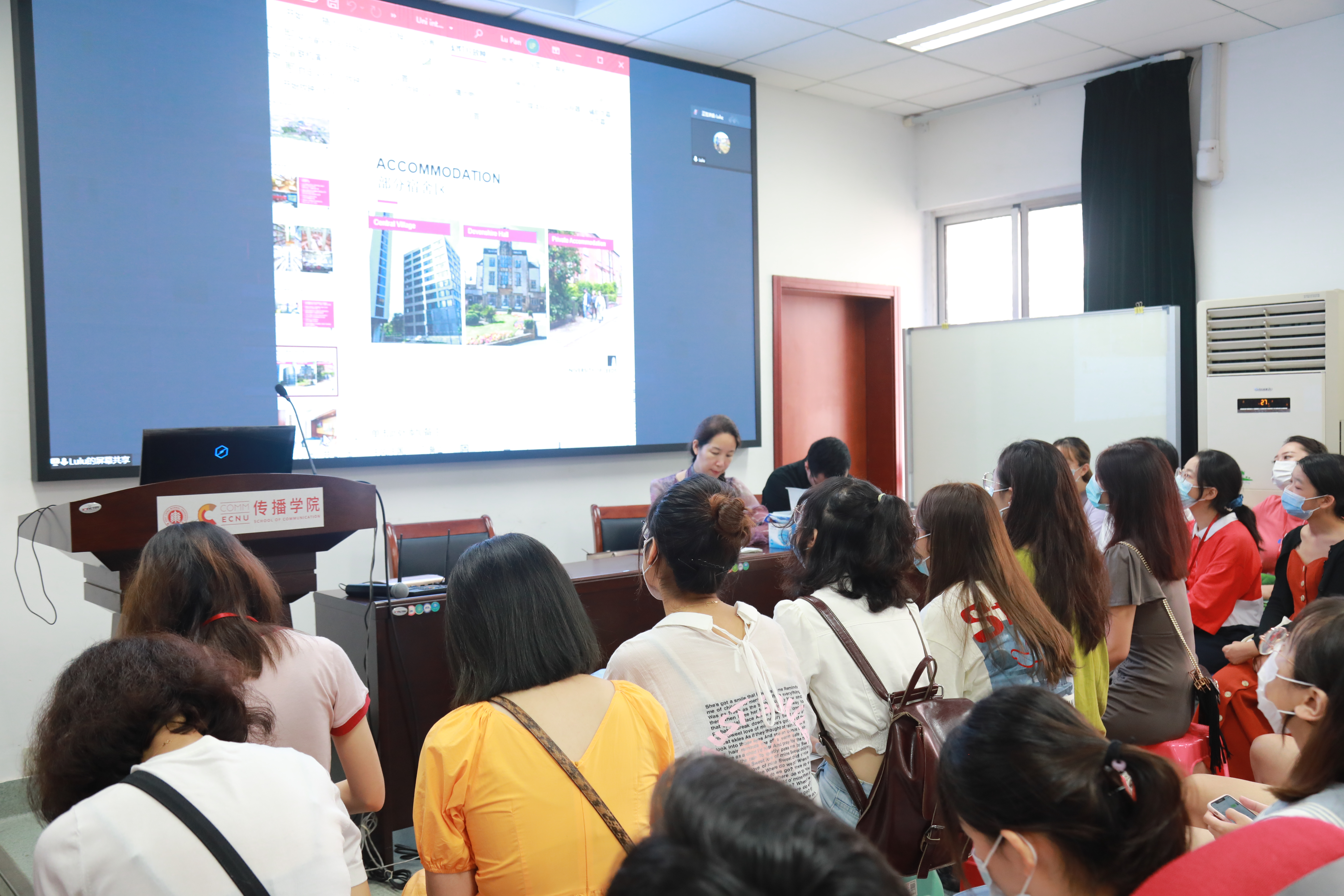 随后,来自利兹大学的潘璐老师通过腾讯会议向同学们详细地介绍了华师大与利兹大学的1+1+1硕士合作项目及具体的招生政策。她向同学们详述了利兹大学在GPA和语言成绩等方面的录取标准,并重点介绍了申请时所需要提供的材料。潘璐老师还提醒同学们,交流项目需要申请的内容包括学位课、语言课和宿舍三项内容。