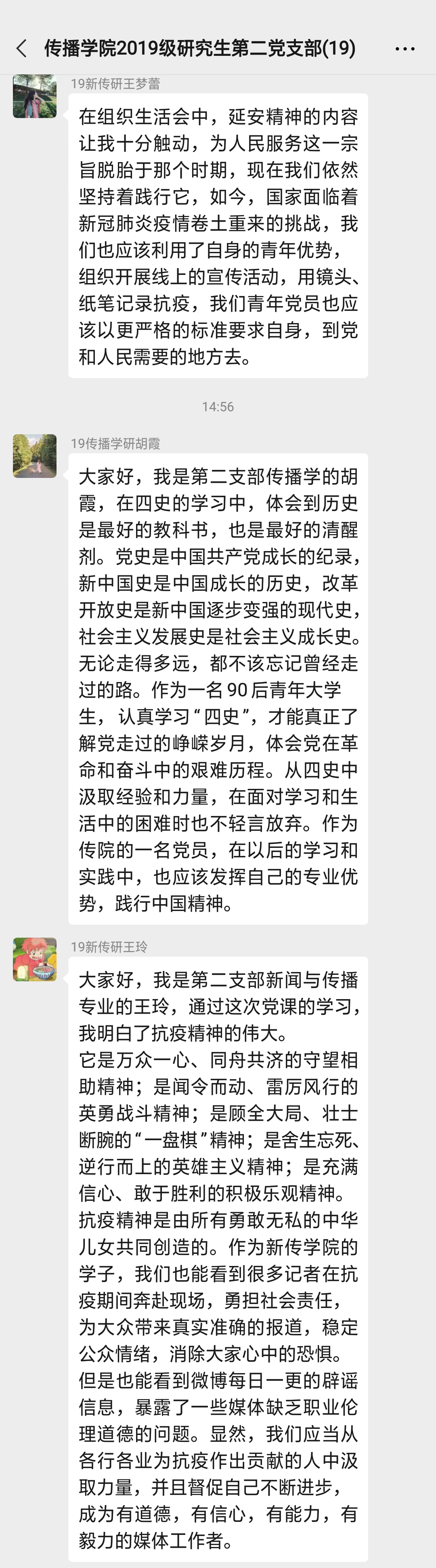 第三个环节互动交流,支部党员根据主题内容,结合自身专业特点,分享学习心得。