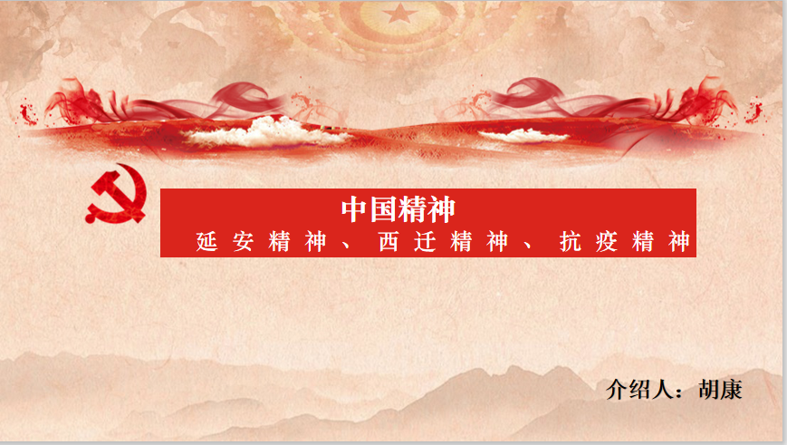 第二环节由黑料718 研究生第一党支部组织委员胡康,介绍中国精神,重点分享西迁精神、抗疫精神、延安精神。