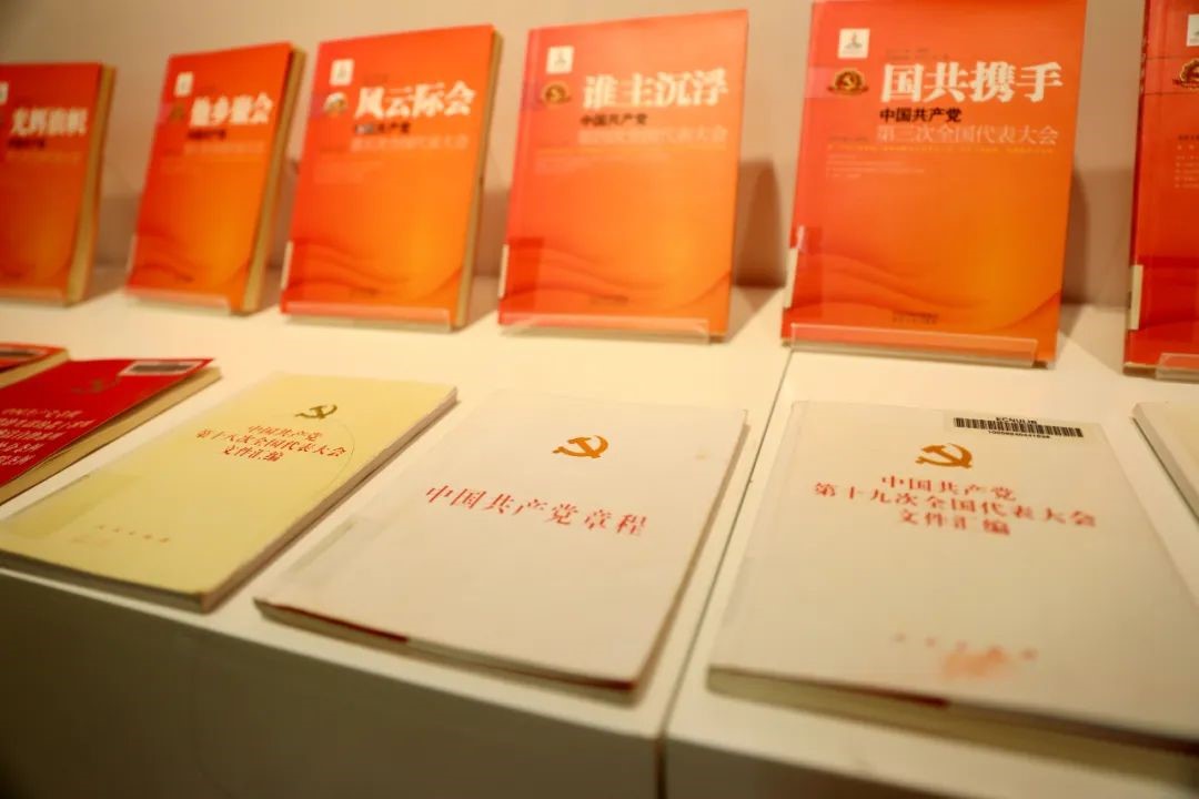 一册册珍贵的文献典籍映入眼帘,述说着一段段不可磨灭的峥嵘岁月。在讲解员的带领下,党员教师们细致地参观学习了中共历次代表大会会址图录、历次党章的制定及修正情况、党章摘录等内容,不仅清晰地回顾了党章的历史发展和基本知识,更是从党章演进历程这一侧面,深入了解中国共产党的思想、理论和政治路线的发展轨迹,真实感受中国革命、建设和改革事业的进程。