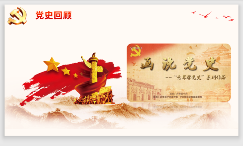 回顾党史,也是为了更好地以史为鉴,把握现在,面向未来;回顾党史,也是为了寻根溯源,心有所依,情有所归。主持人播放视频《画说党史》,带领党员们重温从中共一大到十九大,建党99年来,中国共产党不忘初心、矢志不渝,义无反顾肩负起实现中华民族伟大复兴的历史,以及党团结带领人民进行新民主主义革命、社会主义革命和建设、改革开放和现代化建设伟大事业谱写的气吞山河的壮丽史诗。