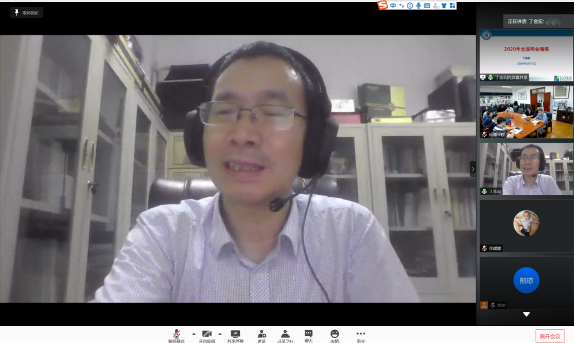 丁金宏对政府工作报告进行了细致解读。他肯定了我国去年的工作成就,但也表示今年面临着严峻的疫情困境。他认为,面对目前的形势,我们既要保持相对乐观的态度,原因在于中国疫情得到及时防控,和其他国家相比赢得了发展的时间差,政治制度的优越性在应对重大危机挑战时,也得到了最充分的体现。要坚持苦战,压缩非必要开支,花大力气谋发展,不抱怨,全国上下团结起来干实事;要保证实事就是的工作作风不能丢,制定积极而理性的发展目标,做好“六保六稳”,进行宽严相济的社会管理。此外,他还介绍了两会中对民法典草案、建立健全香港特别行政区维护国家安全的法律制度和执行机制的决定草案进行审议的情况。