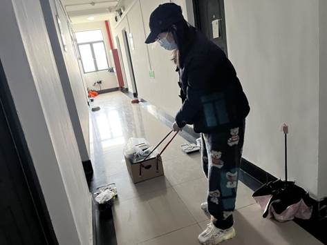 自学校进行封控管理后,我就立即报名成为了所在楼宇的副楼长。随后,我第一时间联系各位楼层长,协助宿管阿姨逐个敲门摸清楼内学生人数,建好微信群,帮助做好餐食派发、垃圾处理等工作。
