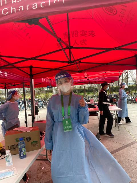 封楼管理下,同学们的一日三餐和急需药品配送的重担落在了后勤工作人员和广大志愿者的身上。我深知作为一名党员,在困难时期为同学们服务是我应尽的义务。在为同学们发放三餐和咨询特殊时期就诊事项的过程中,我感受到了帮助他人的快乐。之后我又加入到核酸检测志愿者的队伍中,继续贡献自己的力量。
