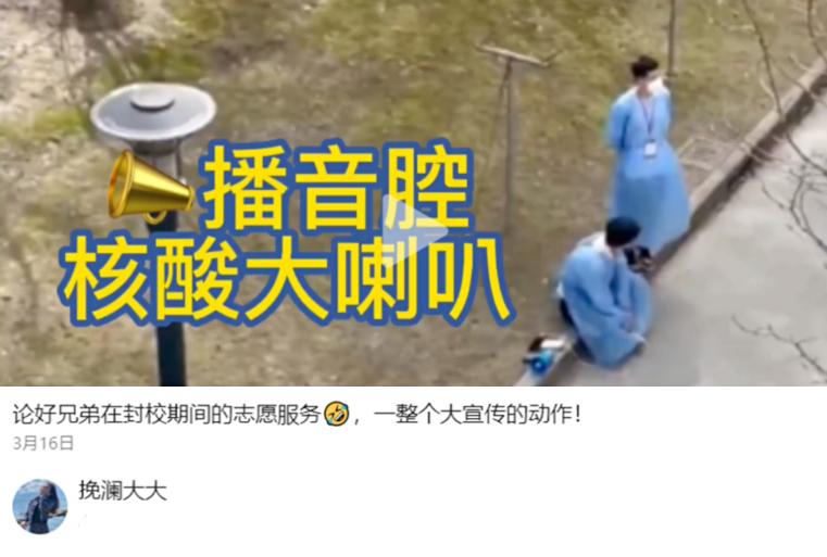 “疫情就是命令,防控就是责任。”爱国主义、集体主义、社会主义的精神,是师大人深入肌理的灵魂,也是新时代青年的内在诠释。在党组织的号召下,基于强烈的责任意识,我加入到学校抗疫志愿服务中,负责核酸检测现场拍摄、楼层送餐和应急物资递送等工作。