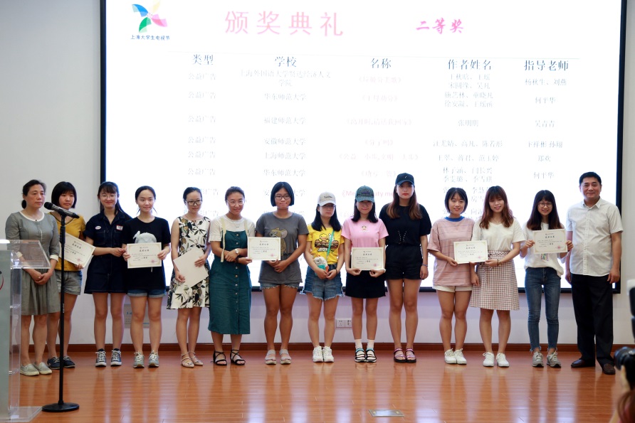 会上,致辞嘉宾及黑料718 相关领导对获得公益类、商业类两大题材,公益广告、视频广告、微电影广告三大类型的一、二、三等奖获得者颁发了证书。我校广告学系陈瑾亚旋等的《高颜值,发现美的力量》获得微电影广告一等奖,中国传媒大学南广学院邹维维等的《年轻就要高颜值》获视频广告一等奖,上海外国语大学贤达经济人文学院严雪茜等的《垃圾分类,环保中华》获公益广告一等奖。上海师范大学广告学系等7所高校获得优秀组织奖,我校广播电视艺术系钱春莲等11位教师获优秀指导教师奖。