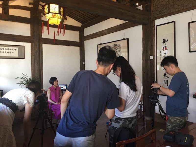 同学们在采访并拍摄闽剧艺术家林颖老师