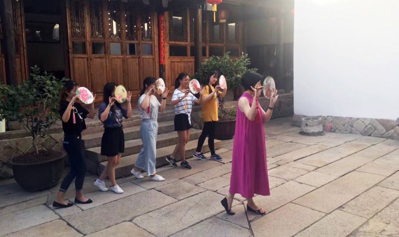 同学们在向林颖老师学习闽剧基本功