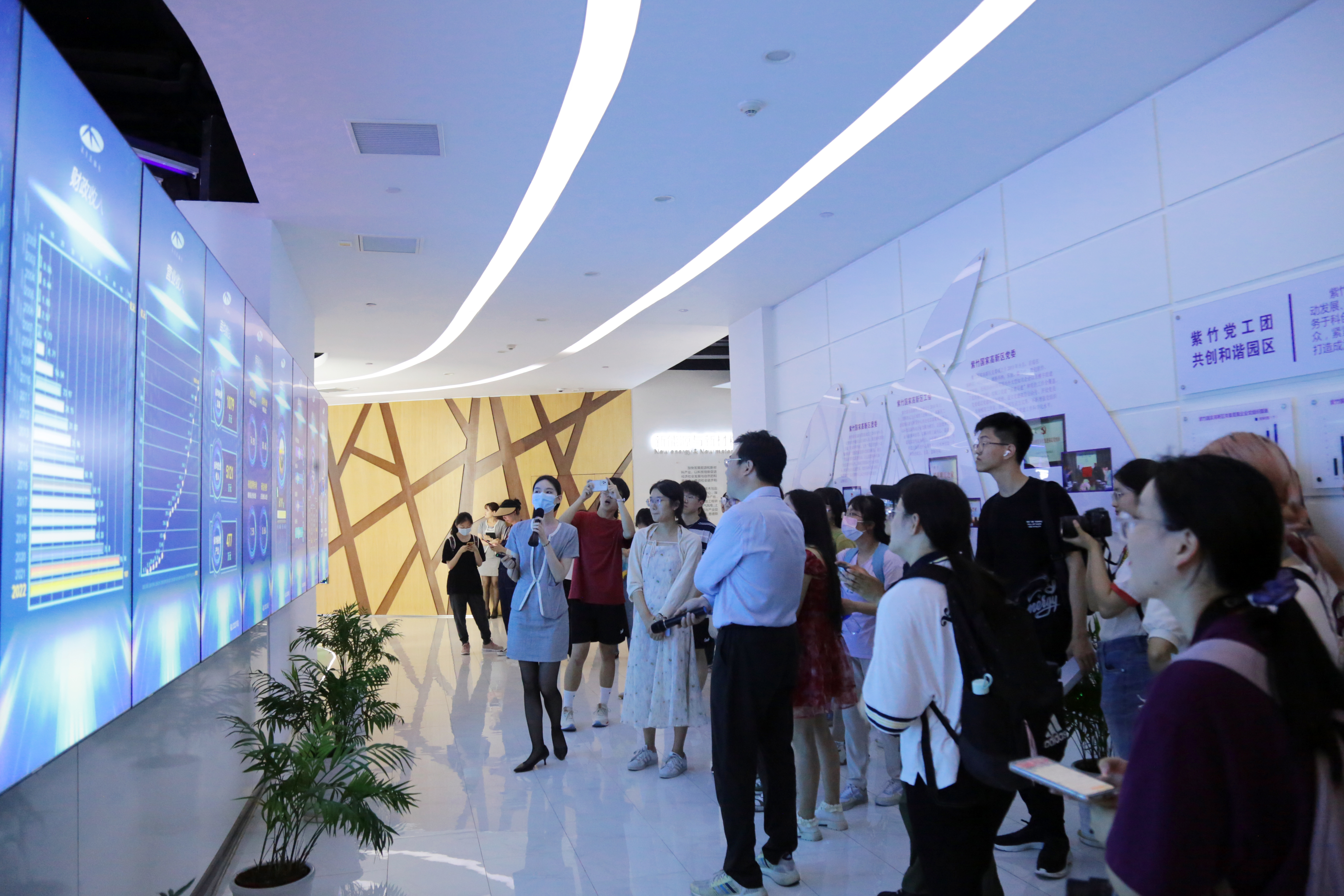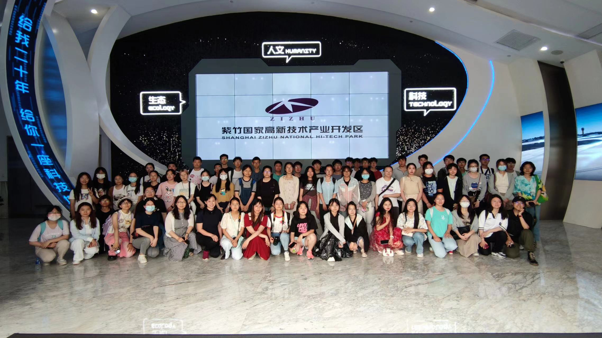 接下来,师生调研团队来到紫竹高科技园区展示厅进行参观。在展示厅专业讲解员的带领下,师生近距离参观了解了紫竹高科技园区信息软件、数字视听、生命科学、智能制造、航空电子、新能源与新材料等主导产业,收获匪浅。