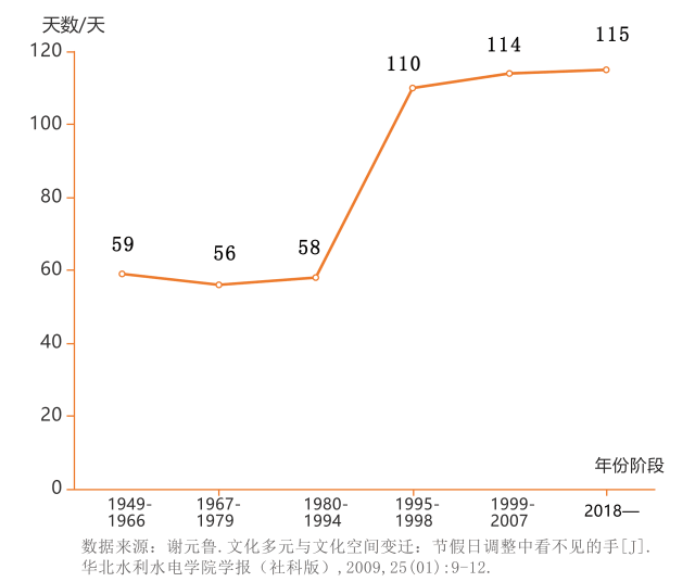 ♦ 假日天数总体上呈增多的态势,双休日制度确定以来,假期数量总体无显著变动,但长假模式被逐步打散。