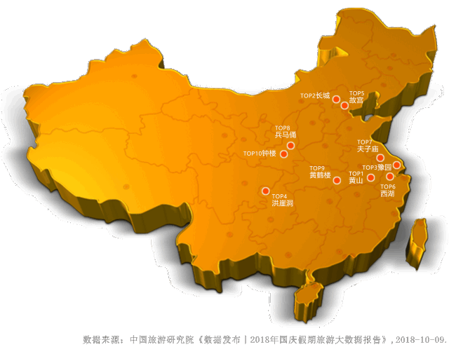 那么黄金周大家都去哪儿玩?就2018年国庆黄金周监测数据来看,安徽黄山、北京长城、上海豫园位居消费热度前三甲。