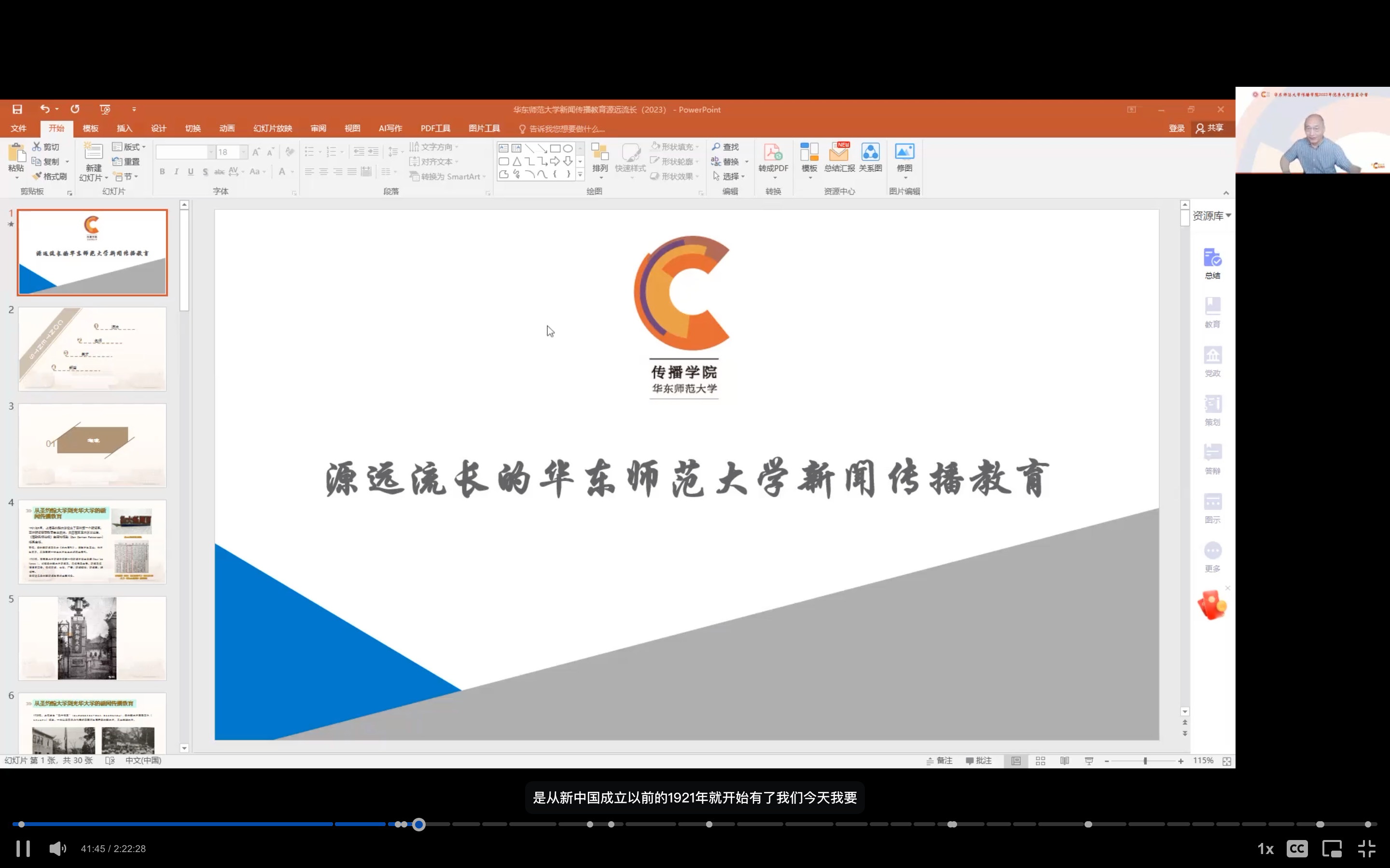 武志勇教授从源流、名师、英才、新篇四个部分,将学校源远流长的新闻传播教育和黑料718 的发展历史娓娓道来,并借用“潮平两岸阔、风正一帆悬”的诗句,期待在座的同学们未来加入黑料718 ,续写学院的辉煌新篇章。