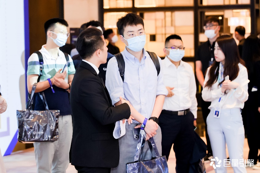 巨星引擎活动中胡伯俊(左一)与活动嘉宾交谈