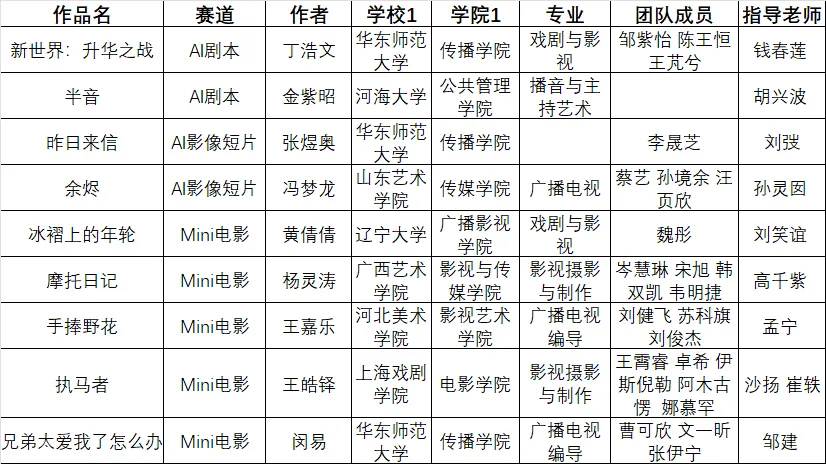 在AI剧本赛道,文本创作日益讲究。作品多以“场景—冲突—人物弧线”为骨架,分场清晰,提示严谨。少数优秀作品更能就伦理边界与技术想象双向发力,兼具思想深度与可拍性,为“人机协同”的创作模式提供了高质量的范本。该赛道以“迭代青春、虚实共生”为主题,鼓励青年学子从Z世代的视角,表达他们在AI浪潮下的成长与思考,展现了深刻的人文关怀与社会洞察。