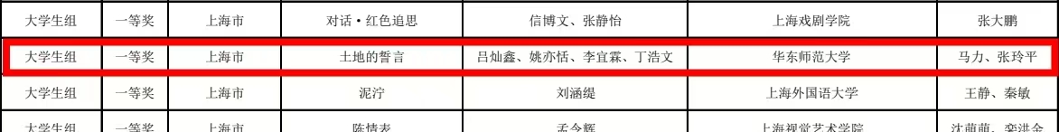 获得全国一等奖的作品《土地的誓言》为端木蕻良作品,传递出“九一八”事变后,东北流亡青年对国土被日寇侵占的悲痛与愤怒,最后饱含激情地传达出愿为解放故乡付出一切,甚至不惜牺牲生命的坚定誓言。