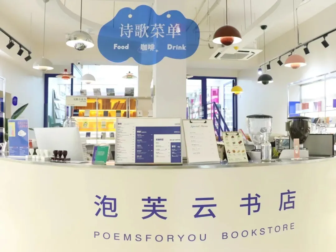 “POEMSFORYOU为你写诗”是成立于2014年的原创诗歌平台。它源于一位爱诗人的小想法,后又慢慢聚集了很多同样爱诗的朋友。他们分享、谈论诗歌,出版诗集,也尝试着把诗设计到日常所见之物上。于是,这群爱书爱诗的人在曾经的出版一条街上,开设了一家蓝色的诗歌书店——泡芙云书店。