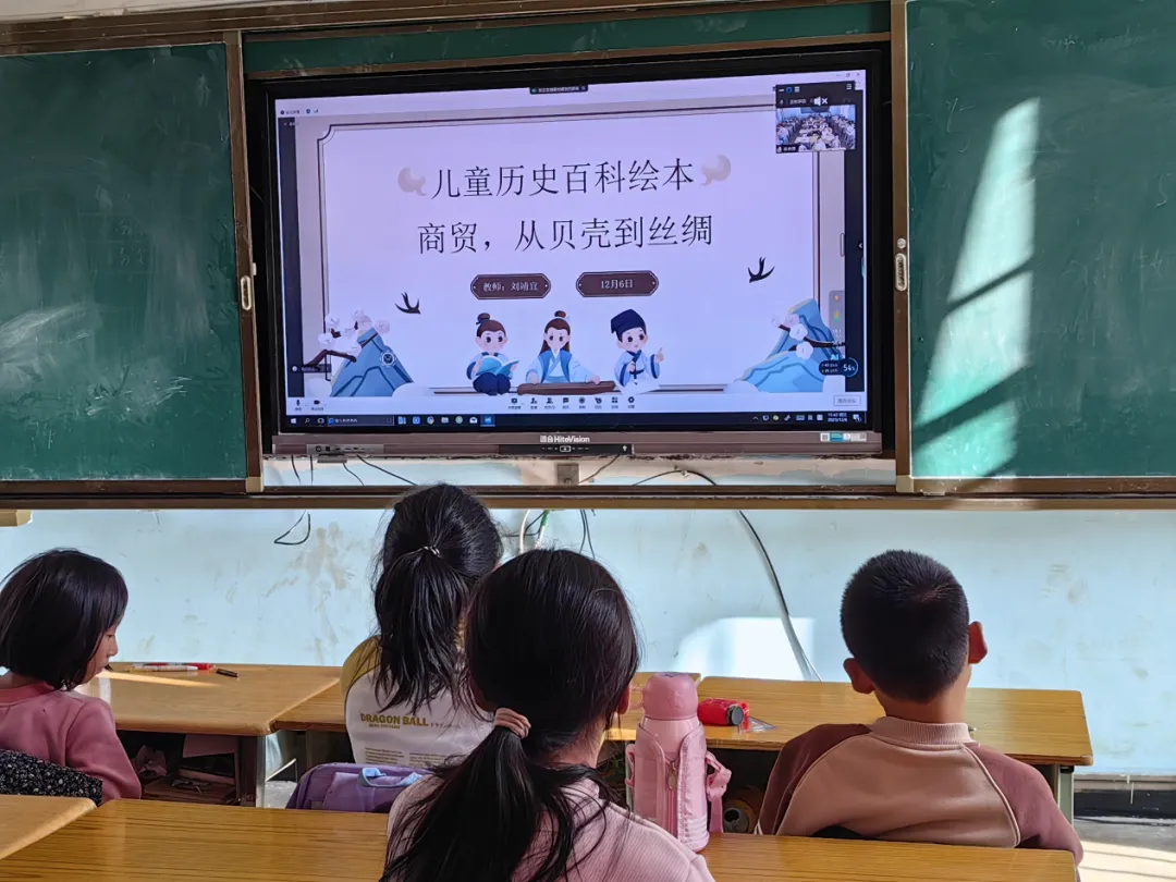 对口帮扶云南寻甸雷锋希望小学的“经典导读”课程第八讲顺利完成。项目教学组核心成员——硕士研究生刘靖宜同学为四年级的孩子们带来了一节富有趣味性与科学性的《儿童历史百科绘本——商贸,从贝壳到丝绸》导读课。