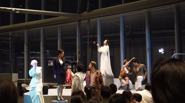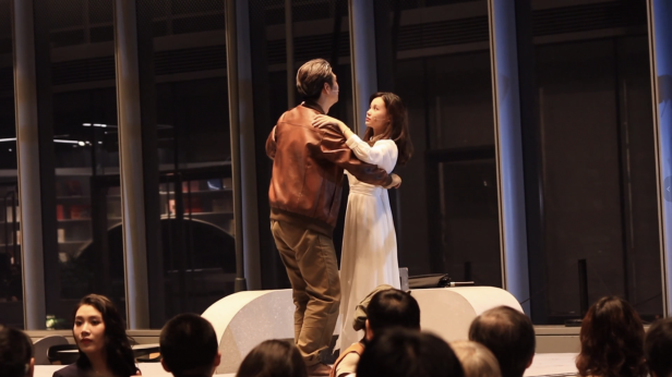 “选择在朵云首演《摩天大楼》,远不止剧名的巧合。”《摩天大楼》导演兼同济大学表演老师魏亮介绍。朵云书院本身即是城市文化的象征,其高空属性与剧中探讨的现代都市生活、人际关系疏离等主题高度契合。为了这次特别的演出,剧本植入了上海特有的外滩意象,让高空叙事接了“上海地气”。