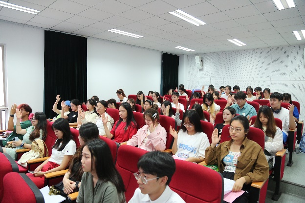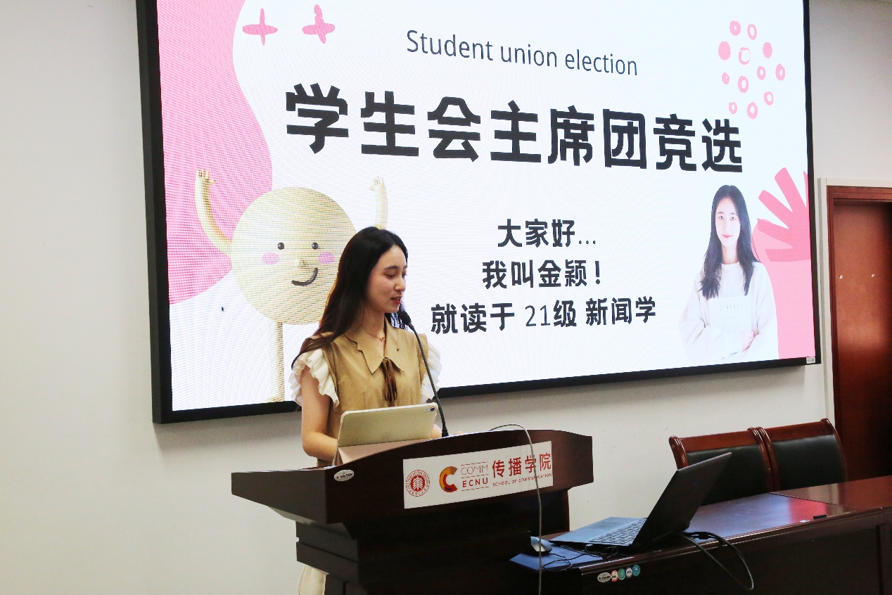 5名主席团正式候选人按照抽签顺序依次发表竞选演说。竞选过程中,参会老师与学生代表认真听取并依据候选人演讲提出问题。