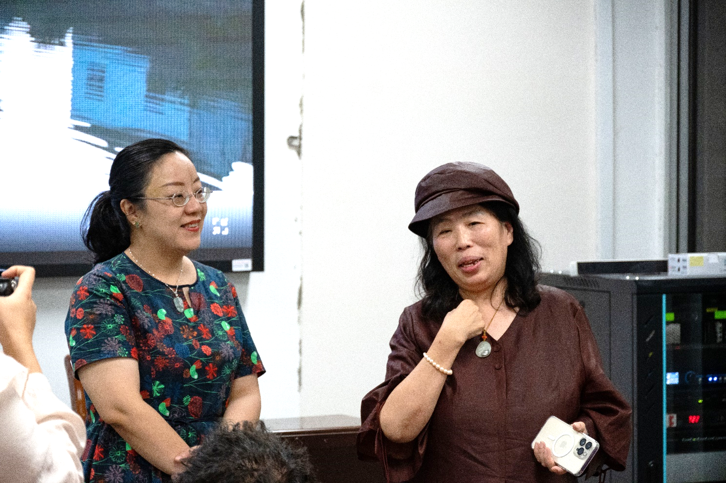 首先,关于影片中四次评弹片段的加入,韩君倩导演揭秘,评弹这一要素在前期创作和拍摄中并不存在,而是在后期剪辑的过程中,拍摄现场不断出现的评弹背景音给予了她这一灵感。“(评弹)既有一种间离效果,又有作者的视点,还有一种写意的东西。”韩导认为,评弹不仅仅在电影中起到了叙事的作用,还可以为塑造人物形象服务。与此同时,韩导还分享了为评弹赋词的曲折有趣的故事。让学生们更加深入地体会到了评弹这一“神来之笔”的“诞生”过程。
