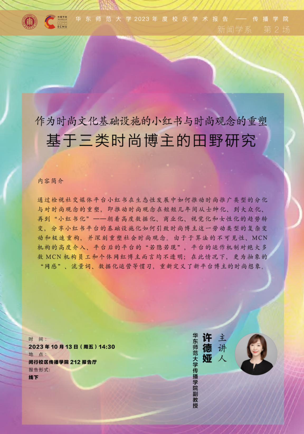通过检视社交媒体平台小红书在生态性发展中如何推动时尚推广类型的分化与对时尚观念的重塑,即推动时尚观念在短短几年间从士绅化、到大众化、再到“小红书化”——朝着高度数据化、商业化、视觉化和女性化的趋势转变,分享小红书平台的基础设施化如何引致时尚博主这一劳动类型的复杂变动和极速重构,并深刻重塑社会时尚观念。由于于算法的不可见性、MCN机构的高度介入、平台后的平台的“若隐若现”,平台的运作机制对绝大多数MCN机构员工和个体网红博主而言均不透明;在此情况下,更为抽象的“网感”、流量词、数据化运营等惯习,重新定义了新平台博主的时尚想象。