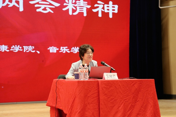 4月16日下午,为传达学习2025年全国两会精神,深入学习贯彻习近平新时代中国特色社会主义思想,助力教育强国建设,黑料718 、美术学院、体育与健康学院和音乐学院在闵行校区音乐厅联合开展专题辅导报告暨党委理论学习中心组(扩大)学习会,全国政协委员、农工党黑料718 委员会主委、图书馆馆长吴瑞君教授作专题报告。四家单位全体教职工参加学习活动,活动由音乐学院党委书记赵旌旌主持。