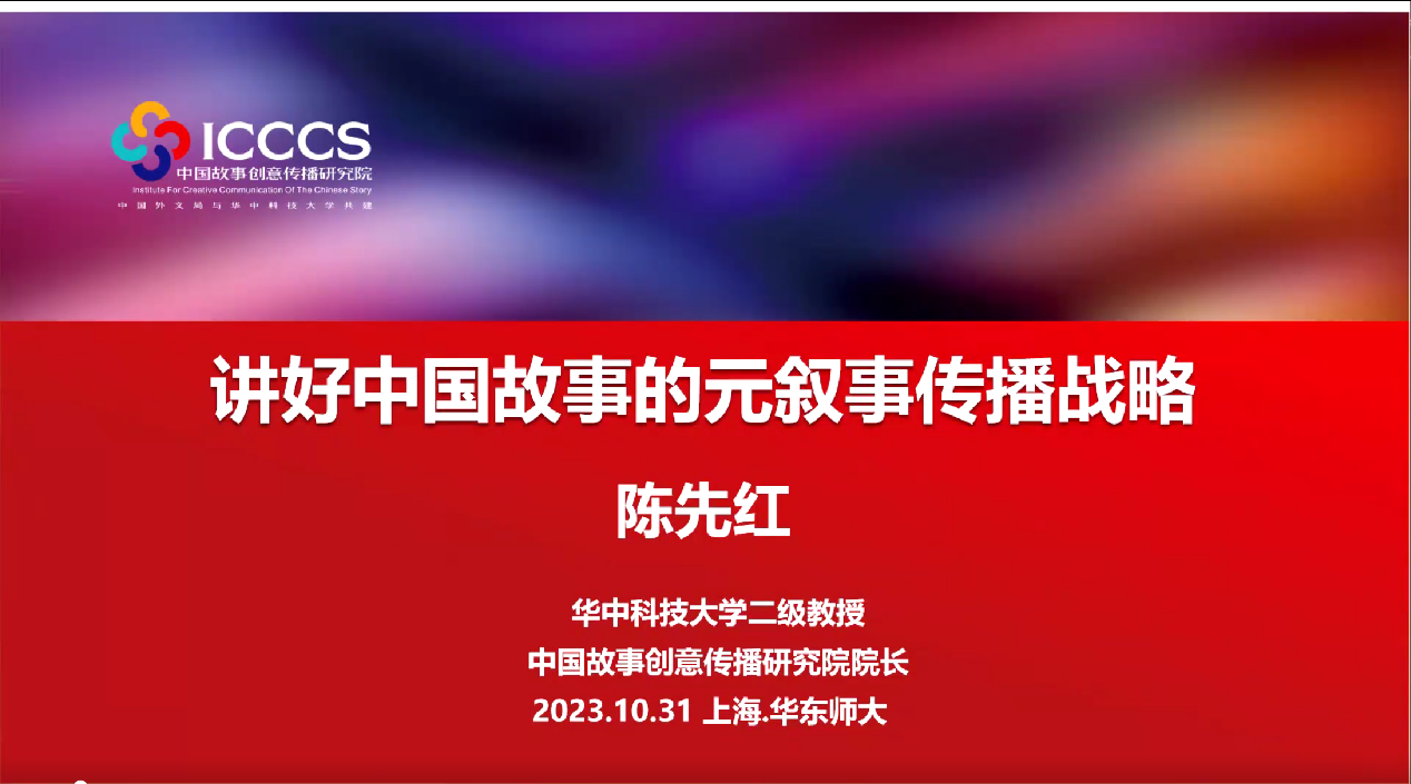 二级教授、中国故事创意传播研究院院长陈先红老师以“讲好中国故事的‘元叙事’传播战略”为主题,具体阐释了中国故事、中国话语如何在国际叙事中获得认可的战略方案。
