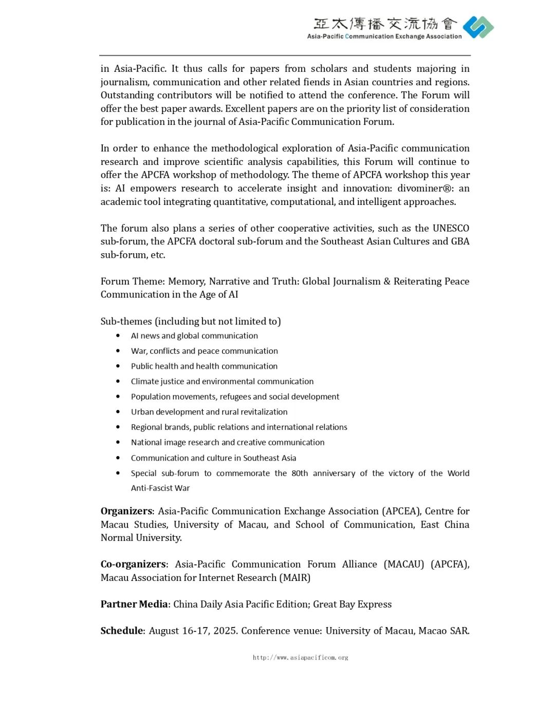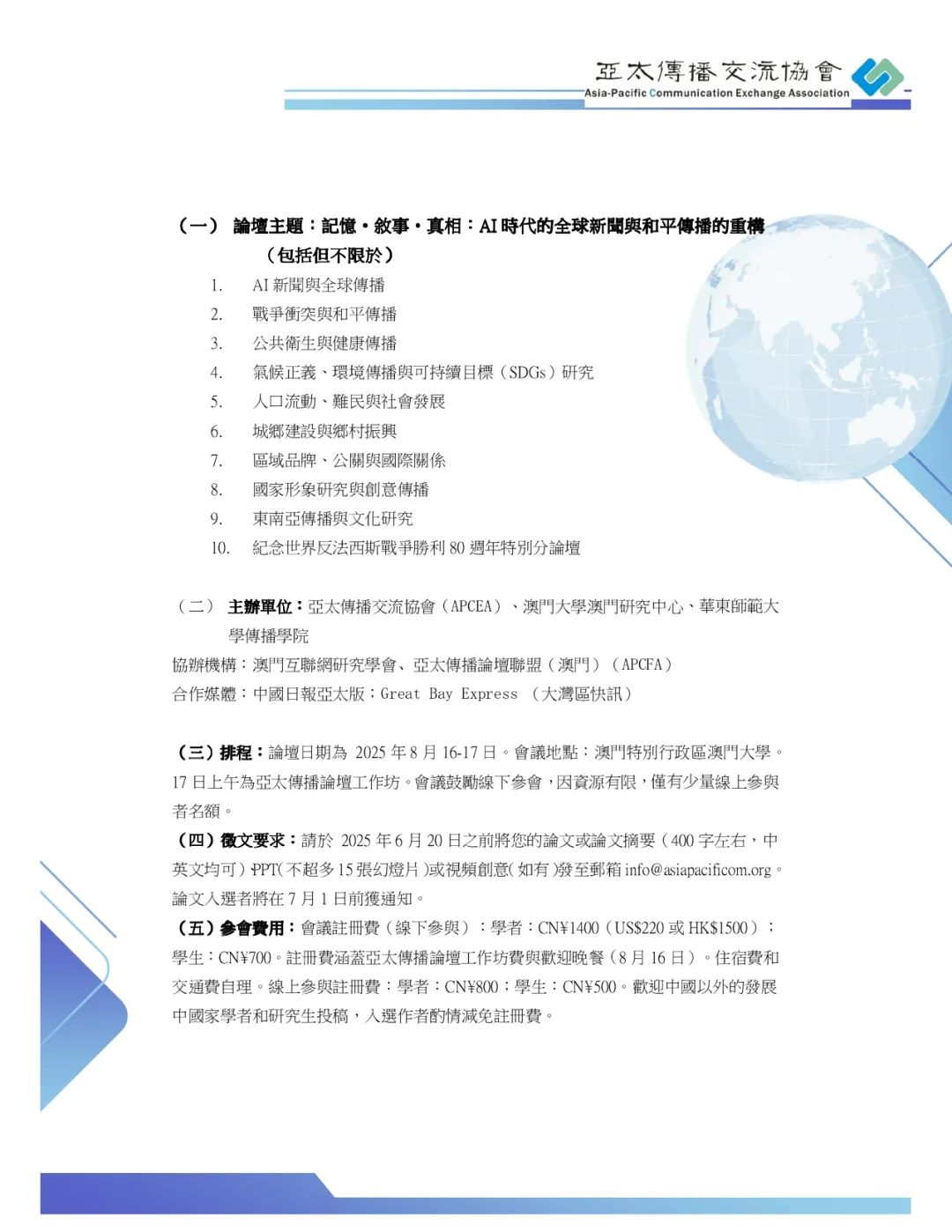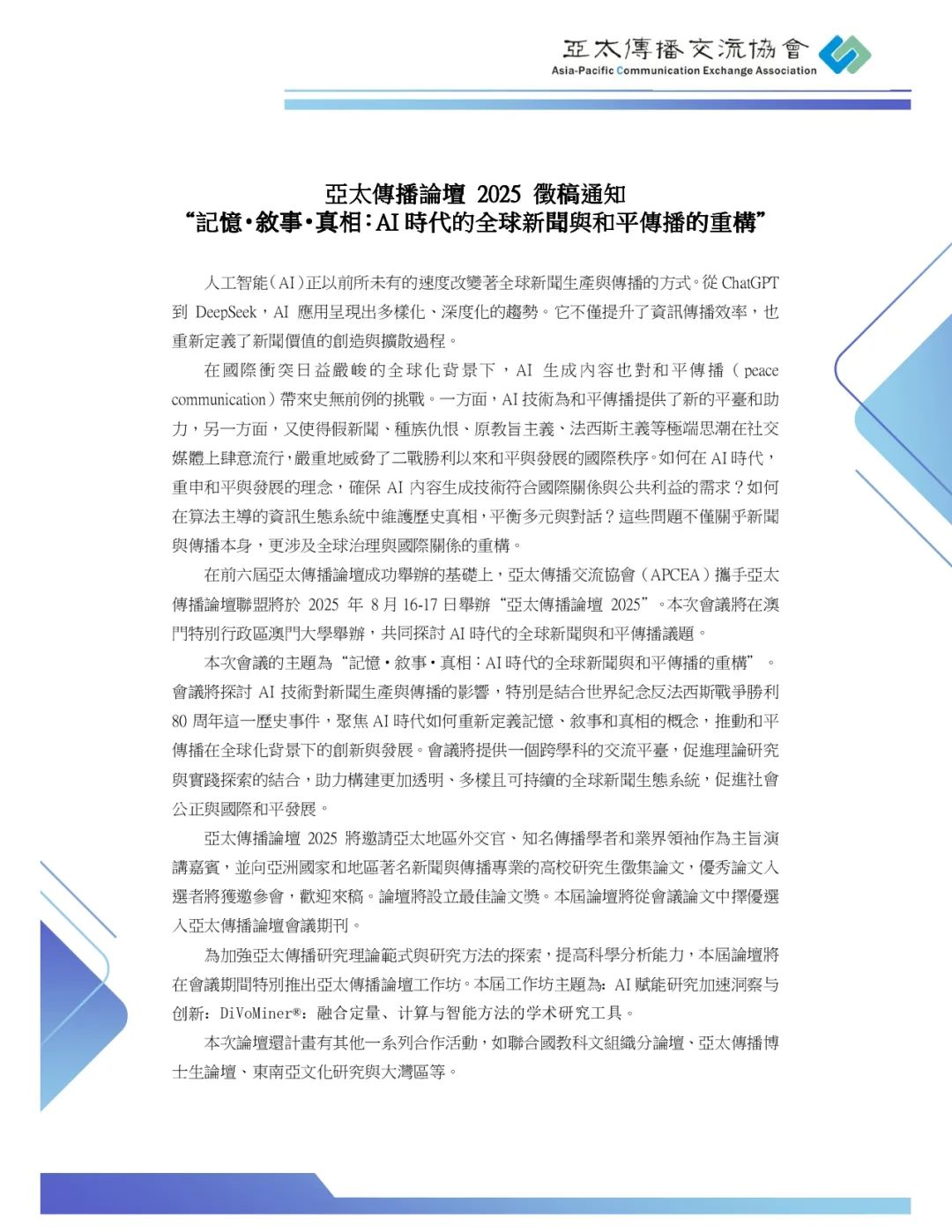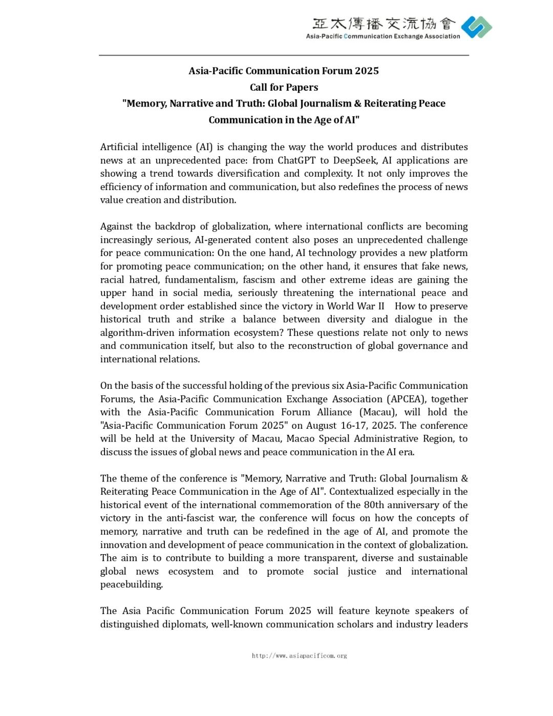 征稿 | 亚太传播论坛2025征稿通知