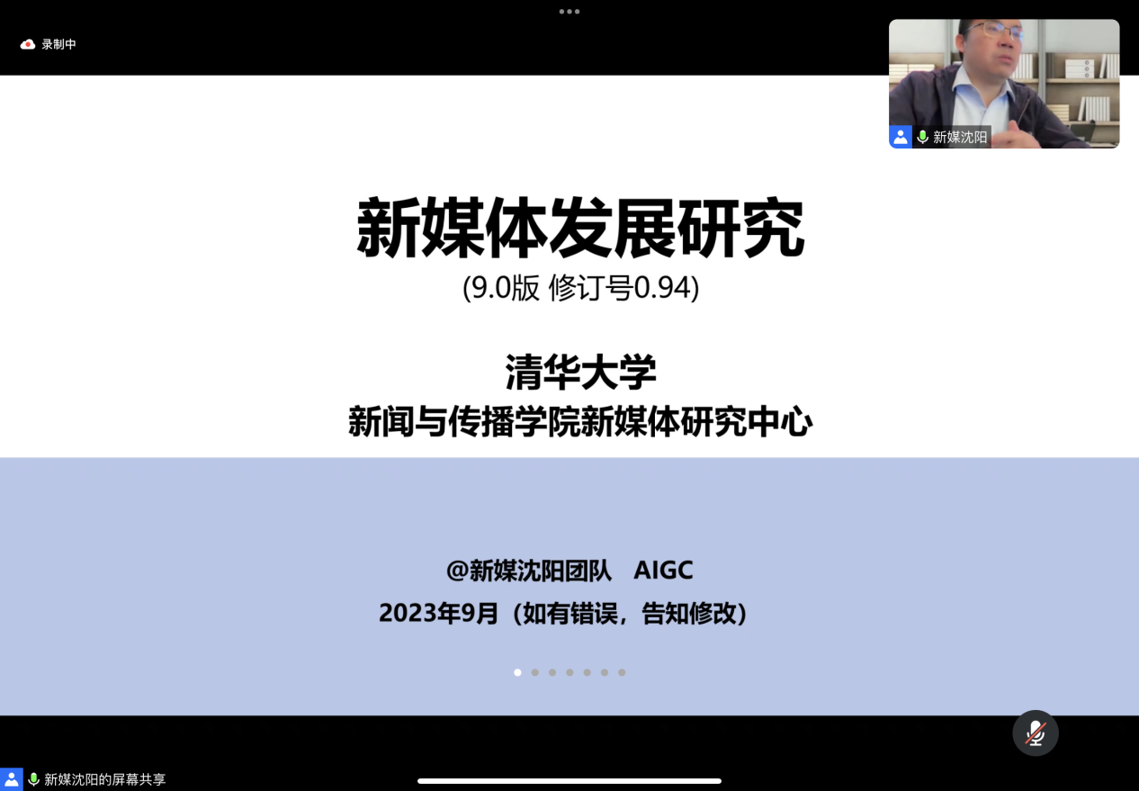 沈阳教授首先从媒体融合条件下的宣传思想切入主题。他表示,新一代信息技术正在快速的改变我们的生活,这种技术的快速发展是不以我们的意志为转移。因此,当前对于媒体融合的探讨应该聚焦于新一代信息技术条件下的媒体融合。沈阳教授又以其团队在9月份发布的《新媒体发展研究9.0》报告为参考指出,数字经济与实体经济融合是二十大报告精神中有关思想宣传和新一代信息技术内容的重要观点。在当下这个充满不确定性的时代,我们正处在一个技术急剧变化的时间点,沈阳教授认为,要想做好思想宣传工作就必须对时代背景有深刻的了解,在不确定性中去寻找确定性。