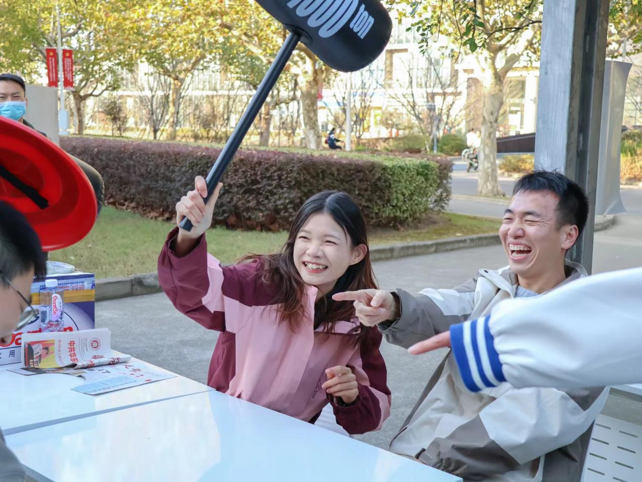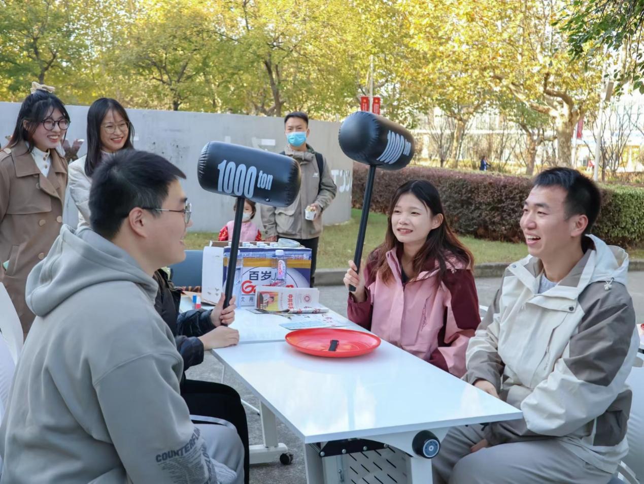 本次活动采取校园摊位打卡的形式,组织同学们参加互动游戏,根据积分排名颁发活动纪念品,现场气氛热烈。活动的游戏环节包括“心动的圈圈”、“321看这边”、“报纸拔河”、“踩气球”、“不要做挑战”等,同学们在趣味盎然的游戏过程中逐渐增进认识。