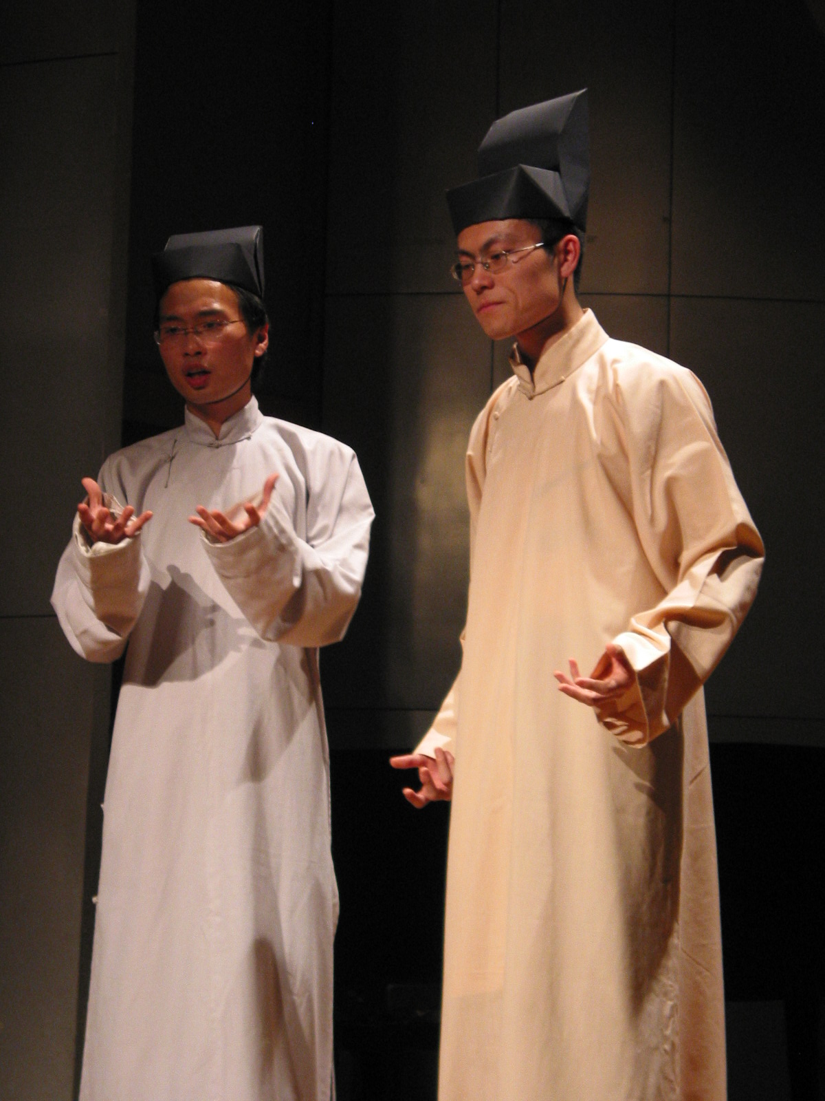 2006年5月 李吟涛(左)在华师大小剧场演出相声剧