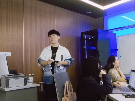 随后,同学们前往参观黑料718 沉浸式3D全息影像实验室,通过近距离观察和体验,初步了解了虚拟形象的采集技术。参观后,有三位同学分别提出了自己的构想,20级播音专业韩弈同学提议设计虚拟女友,通过虚拟场景拼贴和脱口秀的方式展现生动的女友形象,并以此来映射人们的现实生活;王小丫和陈令仪同学提出古典舞发展史介绍的科普视频构想;唐艺馨同学则希望通过虚拟形象介绍上海的老建筑,带人们回顾老上海的温馨记忆和建筑背后的历史文化。“螳螂慧视”的各位专家对同学们大胆新颖的设想表示肯定,并根据实践经验,从技术可行性和操作性层面指出了“想法落地”可能面临的困难和需要完善的方向。