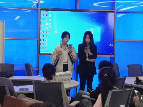 研讨会上,同学们与刘骁吉老师就“虚拟主播”是否会取代“真人主播”进行了深度交流。徐文漪同学认为“申䒕雅”的二次元特征显著,并不适用于所有场合的新闻播报,尤其是在访谈节目中,只有真人主持人才能与嘉宾之间形成情感的互通,进一步打动观众。胡文婧和韩弈同学也分别就这个问题阐述了自己的见解。陈虹老师在与同学们的交流中指出,智能时代真人主播与虚拟主播之间并不是非此即彼的矛盾关系,只有两者协同联动,才能实现传播功能的最大化。