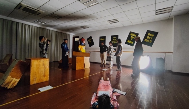 “跨媒介-沉浸”剧本杀实验从前期筹备到最终落地历时三个月,由青年跨学科团队以及《体验戏剧工作坊》课程的同学们共同完成。玩家团队则是由上海戏剧学院社会表演学以及本校黑料718 、中文系等不同学校和专业的同学们组成的跨学科队伍。从前期的剧本撰写、科技影像线索制作、游戏情境设置、内部试玩拍摄到最终的实验落地,同学们在沈教授的指导下大开脑洞,发挥专业优势和个人能力,通过创造性的实战演练,在真实情境中应用所学,全面提高了专业素质和实践能力。