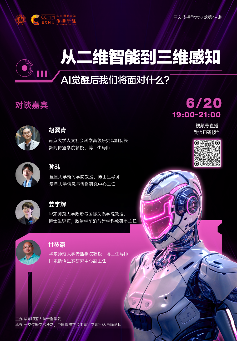 本次学术对谈聚焦人工智能在三维空间感知能力与具身智能方面的突破所引发的智能范式转型。随着AI从依赖符号逻辑与平面数据的二维推理系统跃迁为具备三维空间理解、运动能力与实体交互能力的动态智能体,智能形态正发生根本变革,AI也正由“工具”迈向具备自主性的“行动者”。这一转变不仅重塑了AI感知与理解世界的方式,也深刻影响其认知结构与社会角色。对谈将探讨:(1)在AI发展出三维空间智能后,我们将如何重新理解这一可能具备行动自主性与环境适应性的新“生命体”?(2)空间智能与具身机器人的融合发展将如何改变AI感知与理解世界的方式,在“身体”的复归下,其认知模式和行动逻辑会发生哪些变化?(3)与此前的人机交往相比,这一拥有空间智能的新智能体将如何开展与人类的异质交往,重塑人机交往的范式?(4)这种新智能体的广泛嵌入将如何重构人机共处的现实世界,改变现有的生活空间或城市形态?