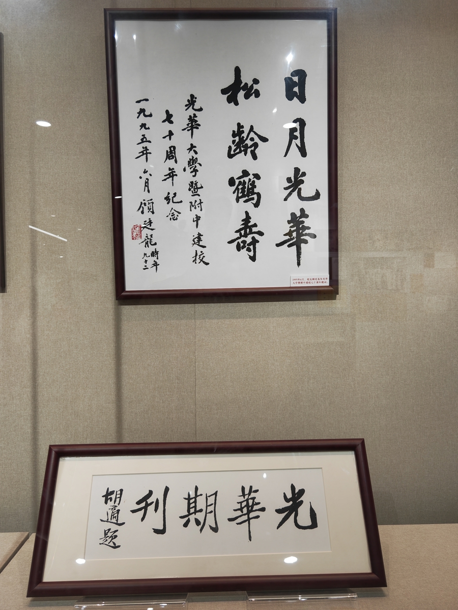 作为策展人,华东师大档案馆馆长、校史党史办主任汤涛表示,学校档案馆、校史党史办与博物馆查阅近万卷档案,通过珍稀档案、历史图片及著名校友题词等,全面展示光华百年曲折又辉煌的办学历程与成果,再现“光我中华”的信仰与担当,对其教育救国精神传承与弘扬。