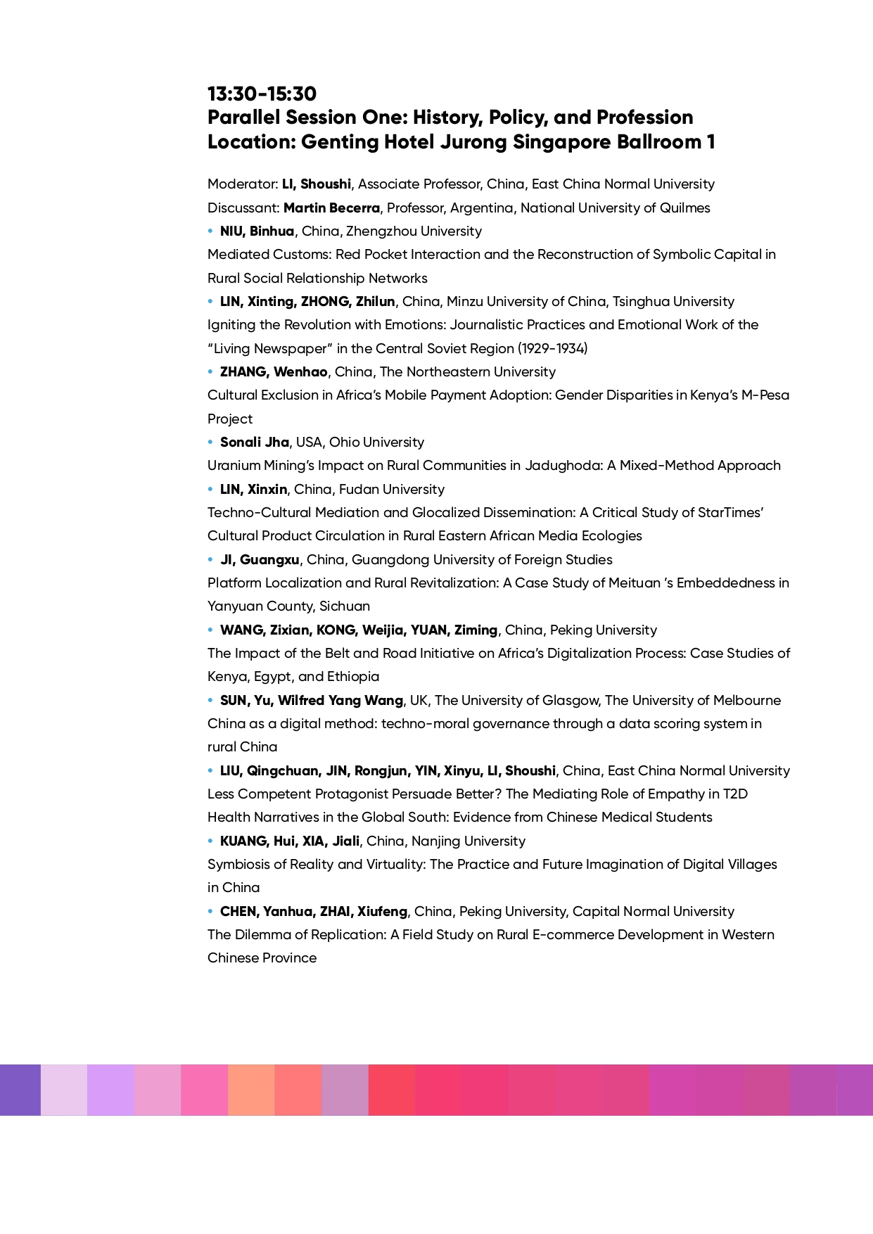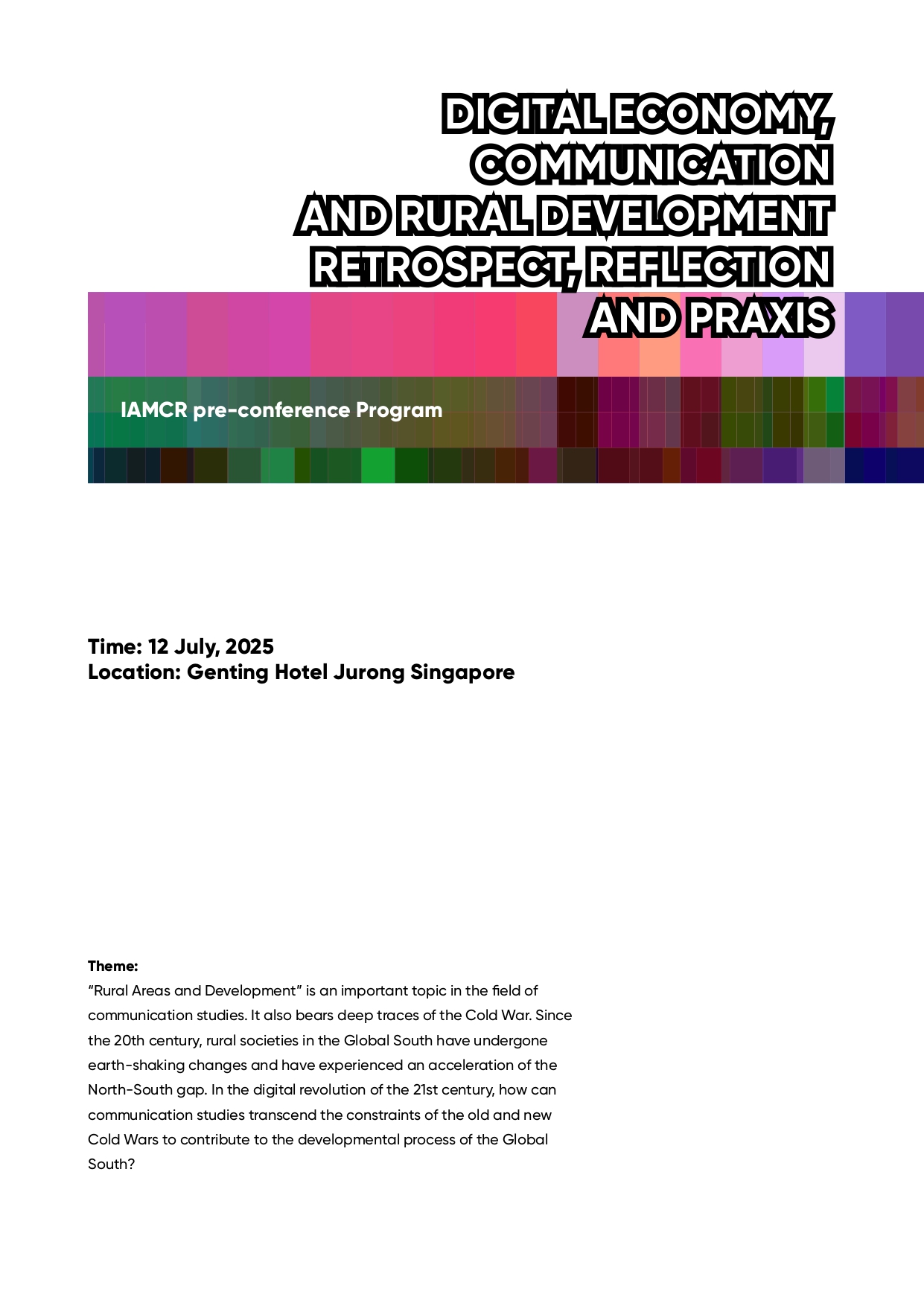 IAMCR Pre-Conference Program: Digital Economy, Communication and Rural Development:Retrospect, Reflection and Praxis