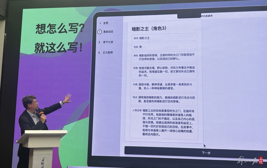 “下一步是开放二三百人的测试,到明年年中,有望实现大范围应用。”王峰介绍,基于用户反馈,团队将持续改进智能写作平台的算法和模型逻辑,进一步提升其在情节生成、人物刻画和文本结构上的多样性与精准性,为创作者提供更高效和个性化的创作工具。“通过不断的技术升级与优化,这个创意写作智能体将在未来的创作领域中发挥更大作用,成为创作者的得力助手。”