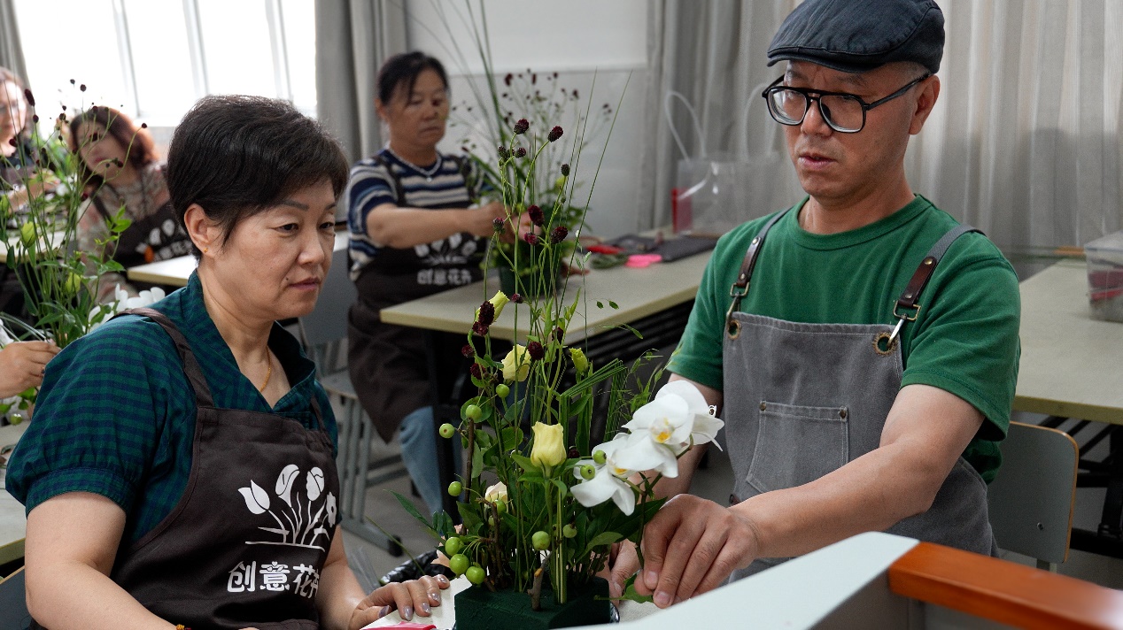 课后,在朋友圈、小红书等社交平台,看到学员的作品,带着自豪的文案,程融会一一点赞、评论。“让这些姐姐们找到一件有意义的事情,并且对我的插花教学感到满意,让我很有成就感。”