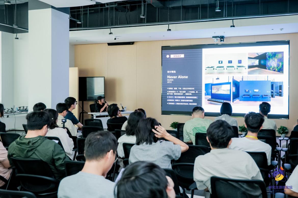 媒介实验室“落日间”创始人、独立学者叶梓涛的演讲别开生面。他以一场富于诗学与哲学意味的“游戏宣言”,呼吁创作者打破范式、探索交互的更多可能性,激发了现场观众对游戏本质与创作自由的深入反思。波克艺术中心筹备部负责人查文婷则从艺术策展的角度,分享了将游戏纳入当代艺术语境的实践与思考,并指出中国游戏艺术策展仍处于起步阶段,需更加注重学术梳理与观众体验的平衡,从而推动游戏作为艺术形态的公众认知。