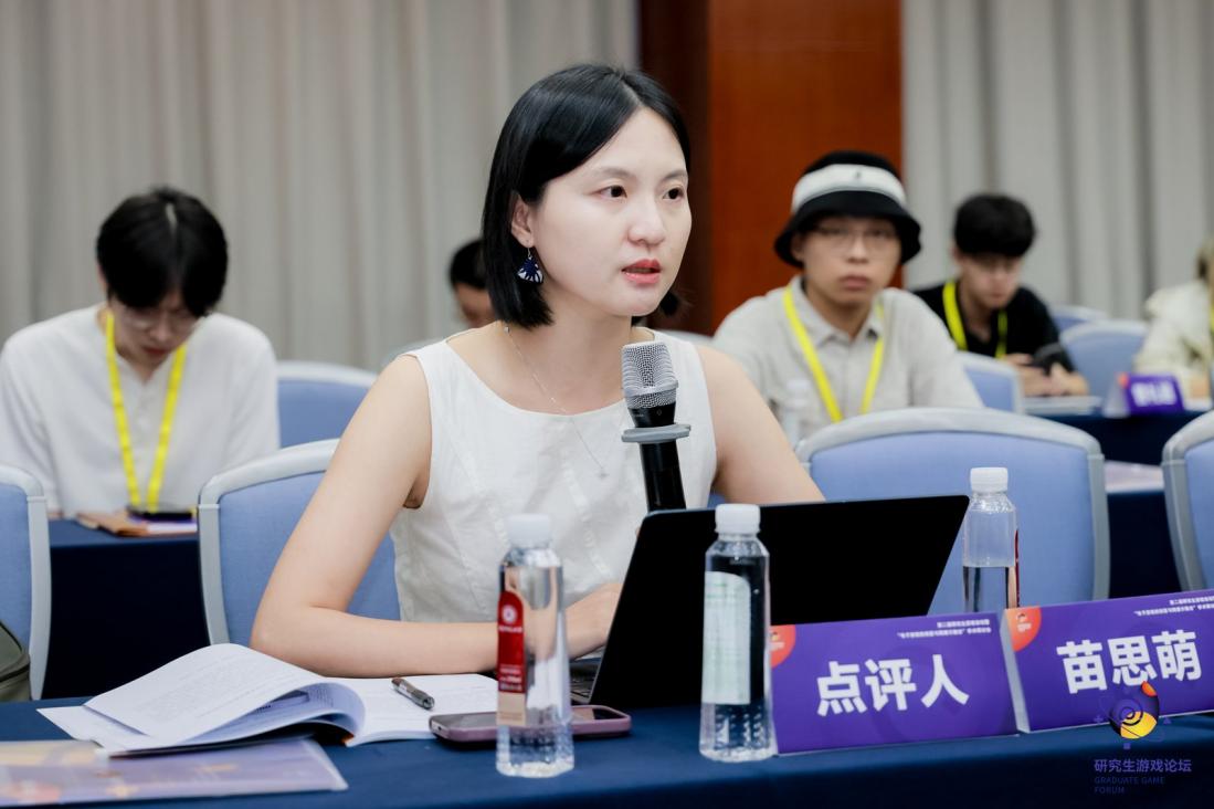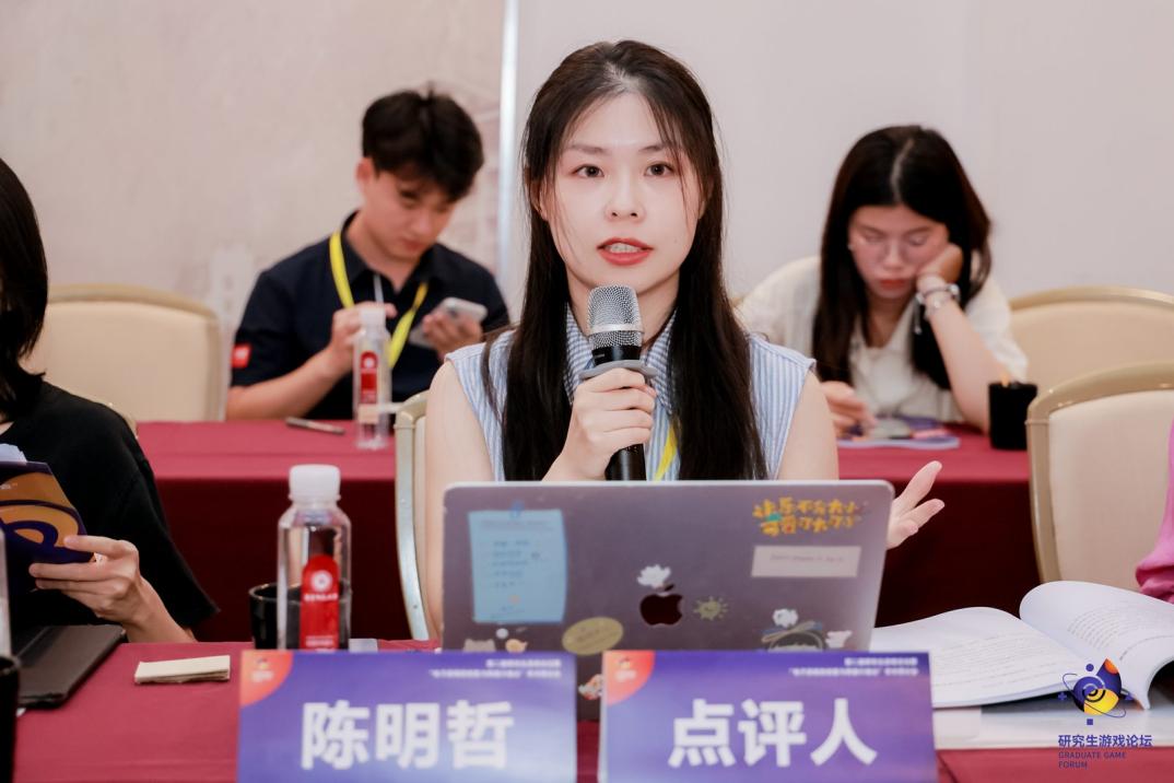 分论坛(二)下半场由中国社会科学院大学文学院博士研究生李苒主持,同济大学人文学院博士后陈明哲评议。五位发言人分别以国产乙女游戏为研究对象,探讨了互动场域中玩家的身份认同与情感建构、虚拟亲密关系与情感真实、女性向游戏玩家的化身认同、以及乙女游戏视频弹幕互动中的准浪漫关系建构。陈明哲为研究者指出了三个关键的深化方向:其一,可以思考恋爱向游戏类型中可能存在的极致自恋结构问题;其二,需强化研究引言中系列问题之间的逻辑衔接;其三,在开展跨媒介亲密关系比较研究时,应同时关注其延续性与断裂性。