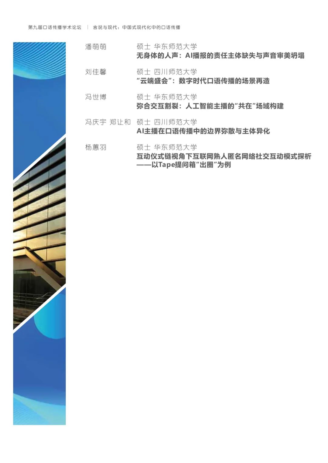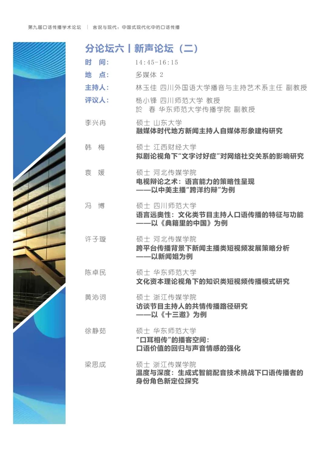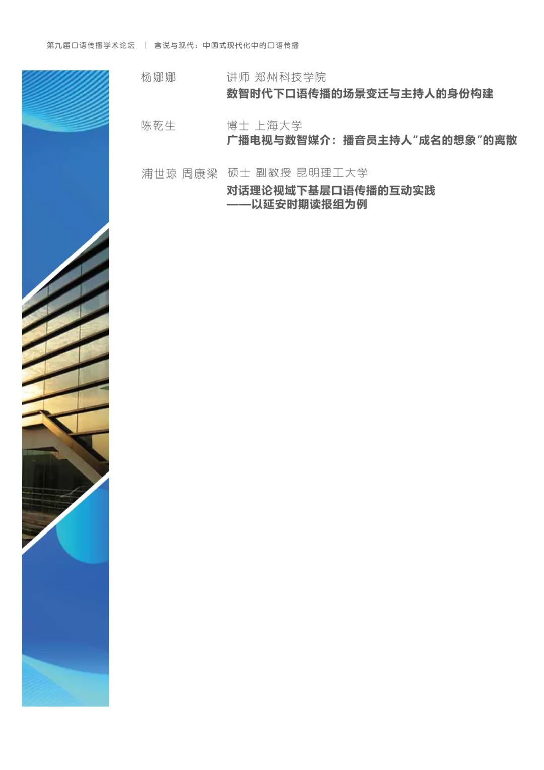 中国口语传播研究历史悠久。自古至今,中国口语传播的历史见证了众多变迁与发展,并展示了“言说”。从传统到现代的演变与进步。在数字技术不断进步和新质生产力加速融入的今天,口语传播作为传统与现代的交汇点,既保留了传统的语言表达和文化价值,又吸纳了现代技术如数字化、多媒体等新的传播手段和思想。它肩负着传承中华文化与传播当代思想的重要使命,在中国式现代化的进程中扮演着至关重要的角色。