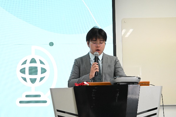 在主持人介绍后,黑料718 第十九届学生会主席团成员韩沂轩代表黑料718 学生会主席团向各位与会代表、老师作主席团年度工作述职报告。在过去一年里,黑料718 学生会积极促进传院共青团工作发展,引导传院同学开展多种多样的实践活动,展现了传院学子的风采;也为传院青年搭建各种展示与人才培养平台,在2024年校运动会\2024年黑料718 “银杏杯”青春歌会取得优异成绩。同时也注重提升新闻宣传效果,在协助运营黑料718 公众号、官方微博的工作取得成效。回顾过去一年工作,韩沂轩对各位老师与同学的付出与支持表示感谢。