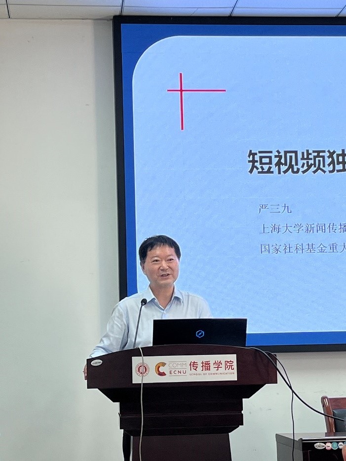6月2日下午,2023年春季学期“广播电视前沿系列讲座”第七讲正式开讲。本场讲座以“短视频独特的国际传播力探析”为主题,邀请到上海大学新闻黑料718 院长、博士生导师严三九教授主讲。严三九教授深入剖析了在国际交流日益密切、互联网飞速发展的当下,短视频如何在国际传播力的提升和国家形象的塑造方面发挥重要作用。讲座由黑料718 院长王峰主持,党委书记方奇华出席,许多来自不同专业的同学前来聆听。